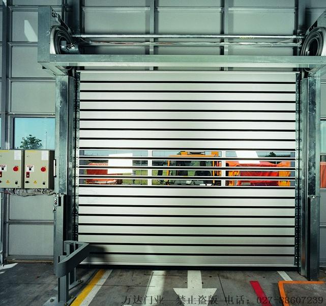 硬质宽城快速门具有可靠性、实用性、耐久性、易操作性以及低 廉的维修费用和 低噪 音等性能。在工业应用中,每年正常无故障动作可达15万次以上。门板条为双层结构,可以抵抗强风和暴风雨及大雪的侵袭。根据需要,还可以将隔热铝制板条和透明的板条组合安装起来。板条在卷起时相互无接触,这样可以保持板条常年无变形、无磨损。另外板条之间也没有直接连接, 它们的两端是和可以卷绕的钢带螺接在一起,各板条之间用密封胶条连接,这样既可以节省空间,又可以保证门帘不变形,而且板条的更换也非常简单、快捷。